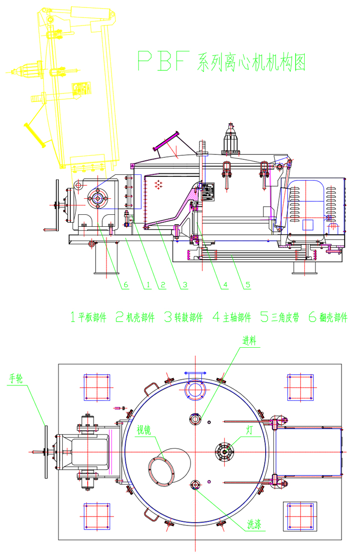 3.全翻殼設(shè)計(jì):可對(duì)離心機(jī)外殼與轉(zhuǎn)鼓夾層空間進(jìn)行徹底清洗,有效清除批次間的交叉污染。上蓋設(shè)置,進(jìn)料、水洗、視鏡、防爆燈、充氮口。