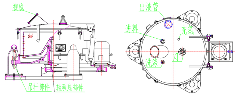 3.大翻蓋設(shè)計,平衡缸助力,開蓋輕便省力。上蓋設(shè)置,進(jìn)料、水洗、視鏡、防爆燈、充氮口。
